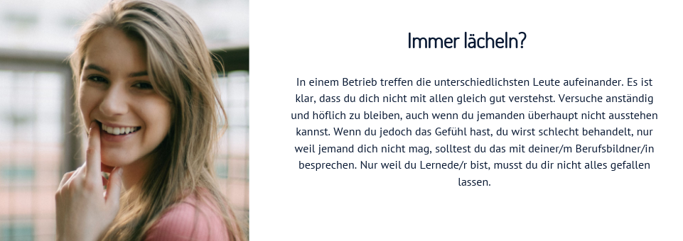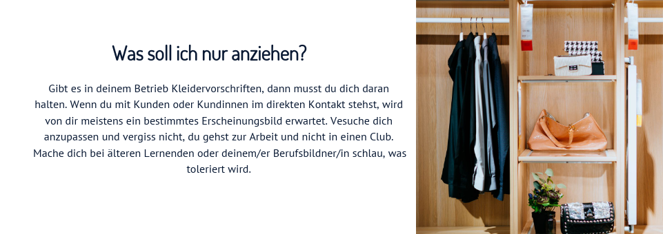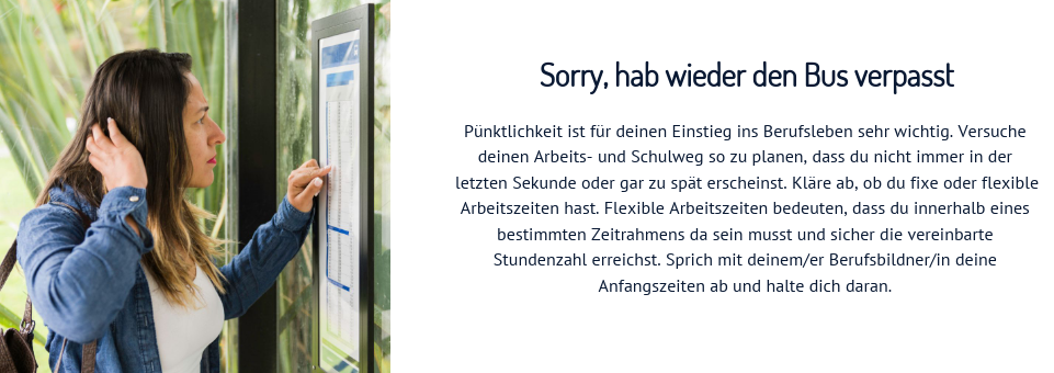 Du hast es geschafft. Du hast eine Lehrstelle gefunden und freust dich bestimmt auf die vielen neuen Herausforderungen. Vergiss nicht, dass du jetzt einen wichtigen Schritt ins Erwachsenenleben machst und sich einiges ändern wird. Du hast weniger freie Zeit und musst dich erst an den geregelten Arbeitsalltag gewöhnen. Du wirst dich vielleicht fragen, wie du alles meistern sollst: die Arbeit im Betrieb, die Berufsschule und deine Hobbys. Lass dich davon nicht einschüchtern, du wirst sehen wie schnell du dich an alles gewöhnst. Um dir den Einstieg zu erleichtern, findest du hier einige Dinge, die du beachten solltest.