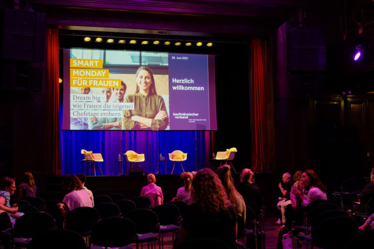 Die Türen des Kaufleuten Festsaals waren nach langer Covid-Pause das erste Mal wieder für unseren Smart Monday Event geöffnet. Vier inspirierende Frauen erzählten in einer von Kathrin Hönegger moderierten Podiumsdiskussion, wie sie ihre eigene Chefetage erobert haben.